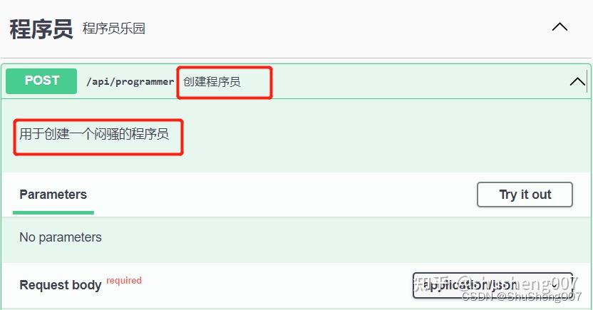 @Operation(summary = "创建程序员", description = "用于创建一个闷骚的程序员")