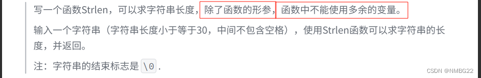 //写一个函数Strlen,可以求字符串长度,除了函数的形参,函数中不能使用多余的变量。