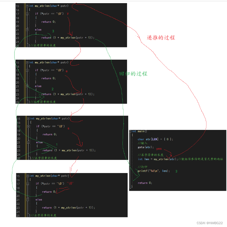 return (1 + my_strlen(pstr + 1));//地址加 1,往后走
