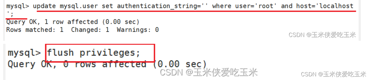 update mysql.user set authentication_string='' where user='root' and host='localhost';