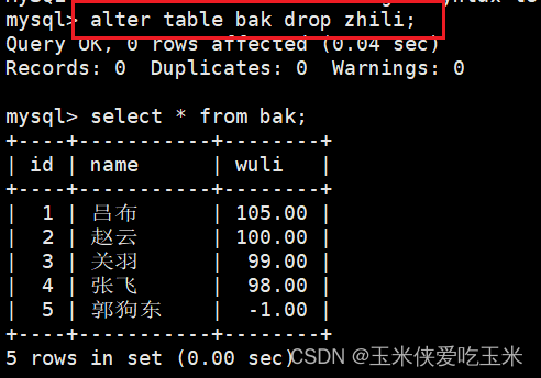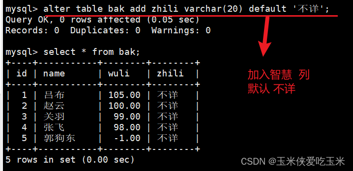 在加入 新列 时 可以看到虽然没填数据 全部会显现默认的数据