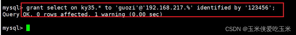 授权 guozi 看的权限 ky35库下所有表 登录来源只能为 192.168.217 网段