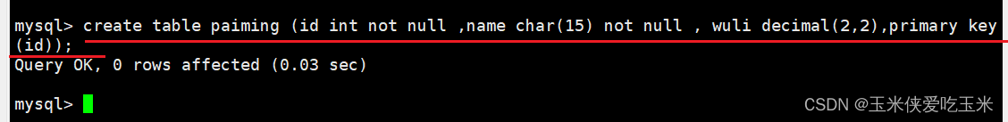 | PRIMARY KEY | 主键,所有记录中此字段的值不能重复,且不能为NULL |