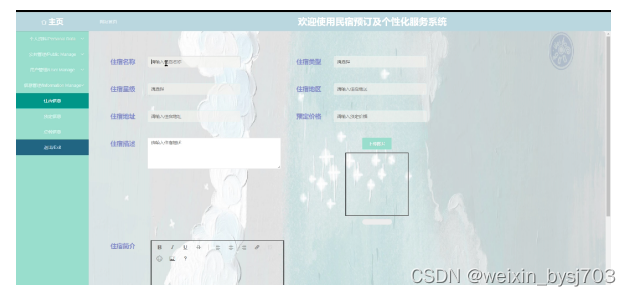 关键词:民宿预订及个性化服务系统;SSM框架;MYSQL数据库;