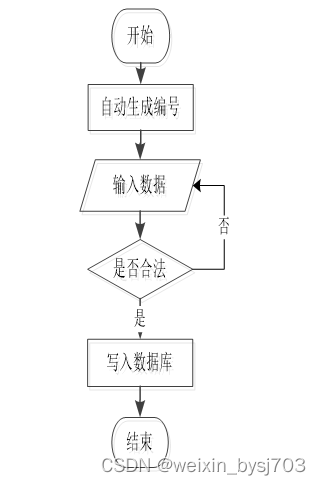 用户在添加信息时,信息编号自动生成,系统会对添加的信息进行验证,验证通过则添加至数据库,添加信息成功,反之添加失败。添加信息流程如图3-5所示。