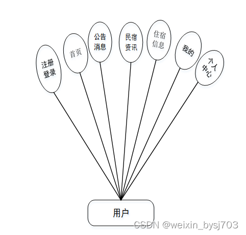(2)用户:首页、公告消息、民宿资讯、住宿信息、个人资料(个人信息、修改密码)等功能。用户用例图如图3-2所示。